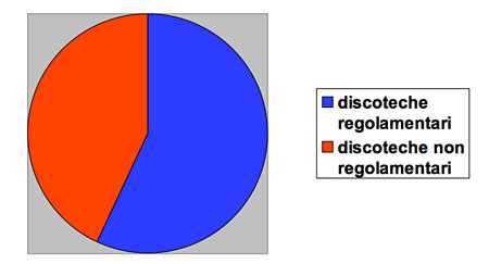 - Le irregolarità evidenziate sono costituite nel 66% dei casi dal superamento dei limiti sonori; nel 34% dalla mancanza del limitatore protetto.