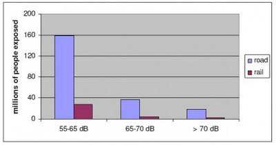 In Europa, secondo lo studio 210 milioni di cittadini sono esposti a rumore da traffico uguale o superiore a 55 dB e 35 milioni al rumore dei treni. Il costo sociale dei danni da rumore viene stimato a 40 miliardi di euro ogni anno.